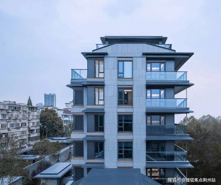 设计巧妙提取传统亭台楼阁轮廓线,将传统建筑的游廊轮廓线,衍生为叠墅阳台外轮廓;将传统建筑楼阁,对应现代建筑房间设计,并以无锡最有代表性的马头墙为突破点,用现代铝板和石材加工手法,重新演绎无锡水乡的轮廓线。