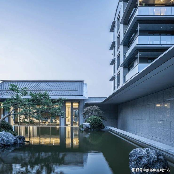 南门·小团月庐,择址无锡梁溪南门,取自“独携天上小团月,来试人间第二泉”。作为无锡市心高端住宅,园区规划依据中式传统轴线布局,在有限的用地条件下,呈现折线形多进院落格局。围绕中心庭院,在“大隐于市”的同时,又把每栋房子“隐”在园林当中,形成一种“隐中有隐,层层递进”的空间序列感。户型设计巧妙实现中叠带庭院设计。立面设计则提取传统无锡建筑轮廓线、花窗等元素,融合现代材料做法,使其具有中式韵味的同时又极具现代感。蓝宝石石材、金属铝板与高透玻璃相互融合,更从材质上营造更具高级质感的建筑立面印象。