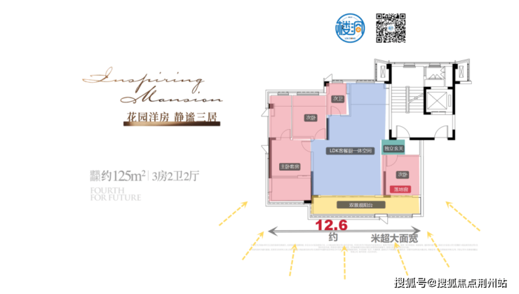 约12.6米南向面宽+双开间大阳台+朝南落地窗,为业主打造了一个全新的居住体验,实现了景观和生活的双重享受。