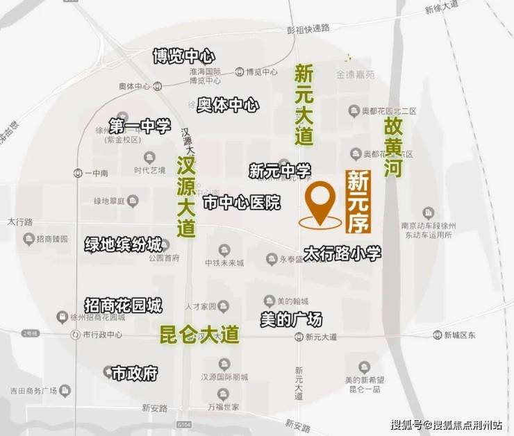 从大区位上看,新元序所在的徐州新城区,是与徐州老城中心并立的城市中心,地理占位的稀缺性毋庸置疑。