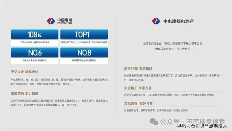 中电建核电地产,世界500强央企(2024年第108位)——中电建集团下属全资子公司,拥有国家房地产开发一级资质,打造了山水泉城系、国誉系等。