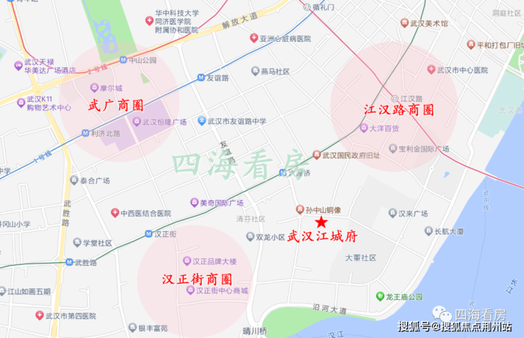 商业上,项目被三大商圈环绕,武广商圈,汇聚了武汉国际广场、恒隆广场等奢侈品商场是武汉最高端的商圈;江汉路商圈,有武汉独一无二的江汉路步行街,大洋百货、王府井百货、新佳丽广场、中心百货、都会轩等等商场邻里,是武汉知名度最高的商圈,而距离项目仅几百米的汉正街商圈,也是百年老汉口最著名的批发市场,真是羡慕死人了。