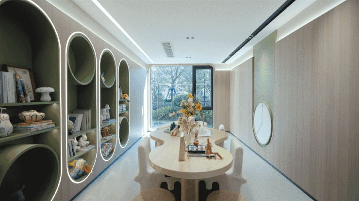 此次亮相的三大核心区域——神兽寄养主题的儿童区、社区图书馆概念的多功能复合区域,以及商务会客咖啡休闲区域,精准击中了高端社区核芯的两大需求:一是年轻父母的“育儿焦虑”,二是全龄段业主的“精神社交”。