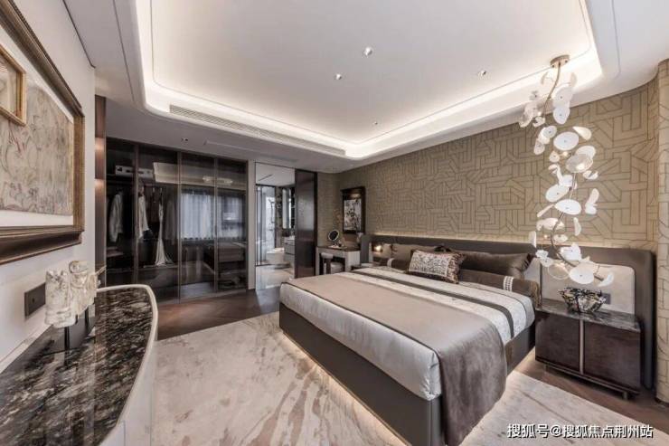 奢华酒店行政套房式主卧设计,大尺度开间采光面,双台盆设计,一应俱全的高阶想象力,享受生活的私密感与尊崇感。