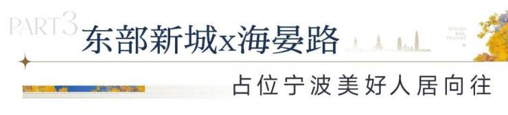 轨交·和晏府择址东部新城旁海晏路上。海晏路,它不仅是宁波向东发展的脉络,也是东部新城千亿繁华的举托。在这里,文化广场、宁波中心、阪急百货等城市地标汇聚,更有泊璟廷、海晏府等代言宁波高品质人居的封面作品,随城市开发愈加稀缺的宅地供应,更让每一次人居诞生都自带传奇印记。