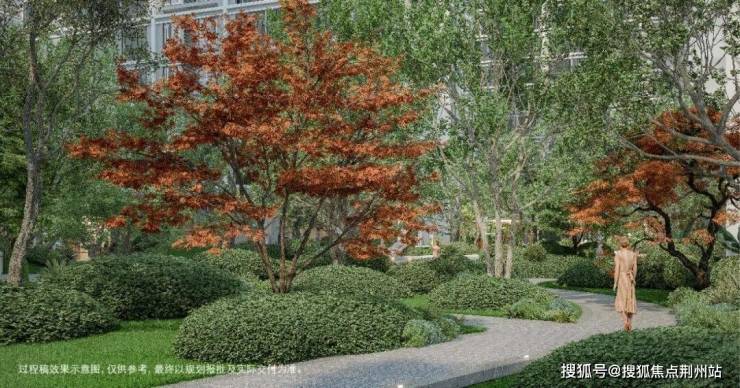 依循自然肌理,创新打造约2.3万方园林景观。植入步行幽径、潺潺流水、葱郁植被等自然元素,让公园溪谷大境于社区内美好生长。