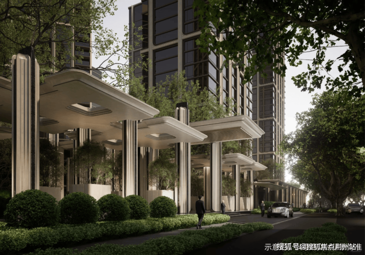 空间布局:九栋25-32层住宅楼以“围合+开放”模式排列,西部楼栋转向设计确保江景最大化,东部楼栋则面向中央景观湾。所有住宅首层全架空,设置下沉式庭院、地下会所及风雨连廊,形成“地面无车位、人车完全分流”的纯净社区环境。