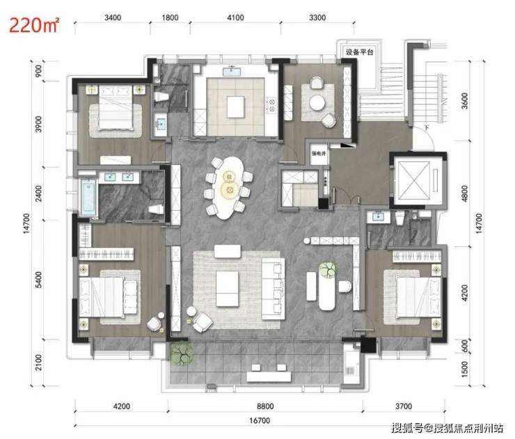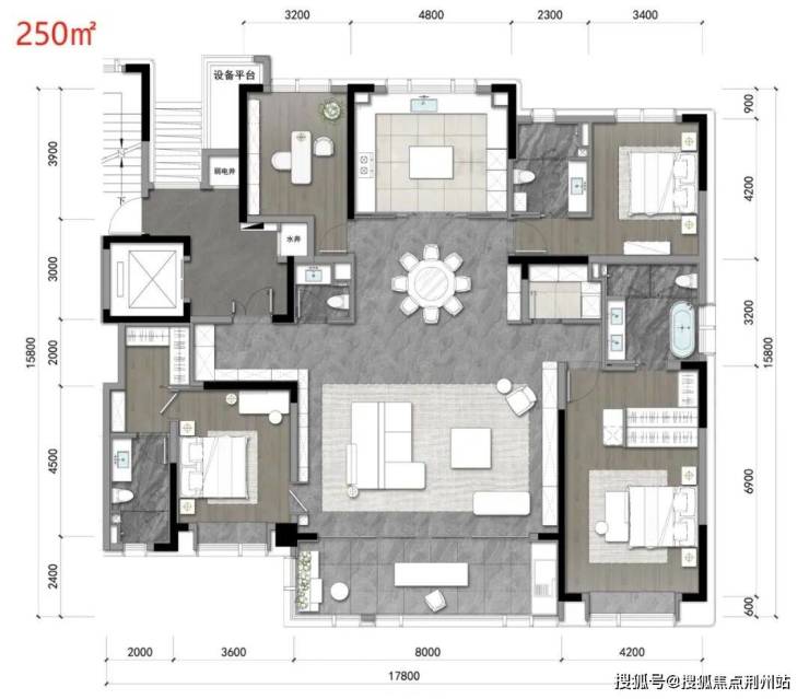 先来看大面积,有220和250两个户型。说实话,大面积的设计很难做出亮点,因为面积够大,该有的都能有。但江万在这次的户型设计上,我看到了很多别人没有的东西。