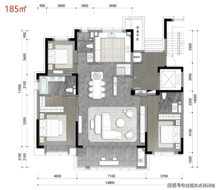 你比如说同样的大客厅、大厨房;185也有着和220一样的2.1米进深阳台;和大面积一样丰富的储藏收纳空间;一梯一户设计等等……哪怕是“小面积”,依然享受足够的空间!