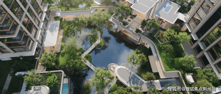 中心:打造约13米高差系统及约3500㎡下沉式澐雾山谷,借鉴日本濑户内NOT A HOTEL的设计哲学,让建筑如同观景舱般伸入景观内部。西侧:退让约28米,打造沿江延绵约200米艺术花园长廊,确保沿江三栋建筑的低区亦被绿意环绕。东侧:以约110米纵贯式巨幅庄园绿茵串联六座主题花园,形成尺度惊人的内部公园。