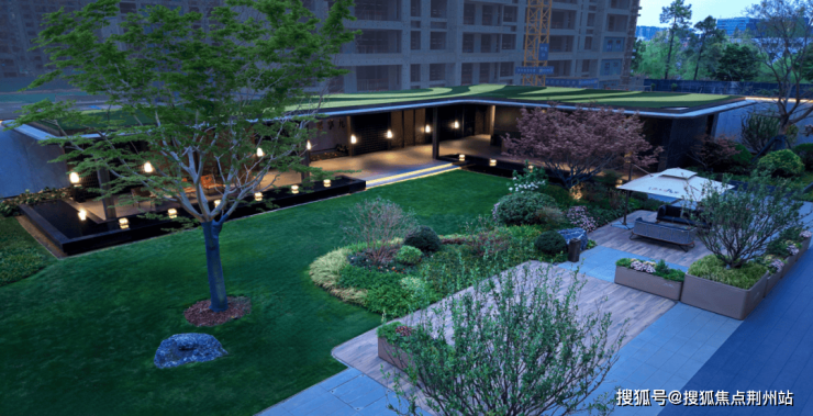 中央10米合欢树撑起二展示范区的生态穹顶,约200㎡沐光草坪环绕其间,成为业主休闲会友的天然客厅。东、北两侧涌泉水景以“高山流水”为喻,与南侧4号楼的精工入户空间相映成趣——雪浪白大理石景墙、香橼红枫的吉祥寓意、四季轮换的时令花境,辅以人性化的休憩坐凳与遮阳伞,将功能与意境完美融合。