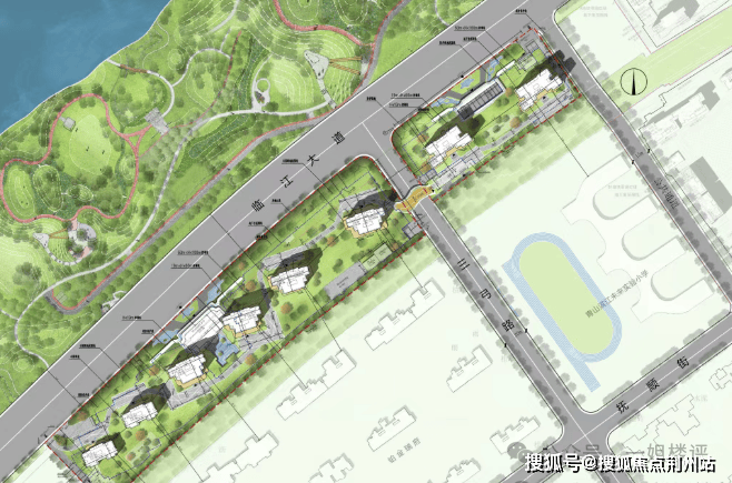 值得一提的是,项目被三弓路隔离成了两个地块,其中东侧地块仅2栋楼。且两个地块有独立的大门入口,都位于临江大道边上。