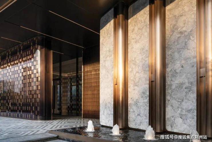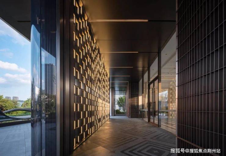 入口两侧金属格栅虚实结合,形与意相得益彰,营造东方生活之美。