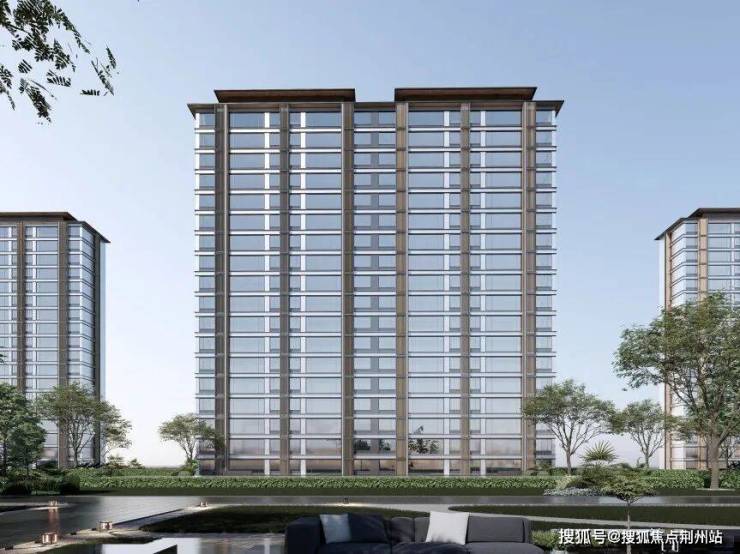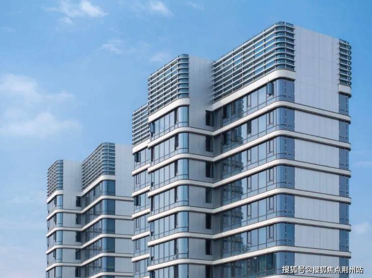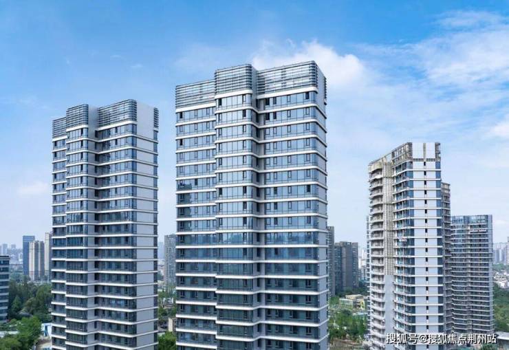 成都锦江府建筑立面为超现代主义建筑风格,公建化的玻璃幕墙效果,立面干净整洁。