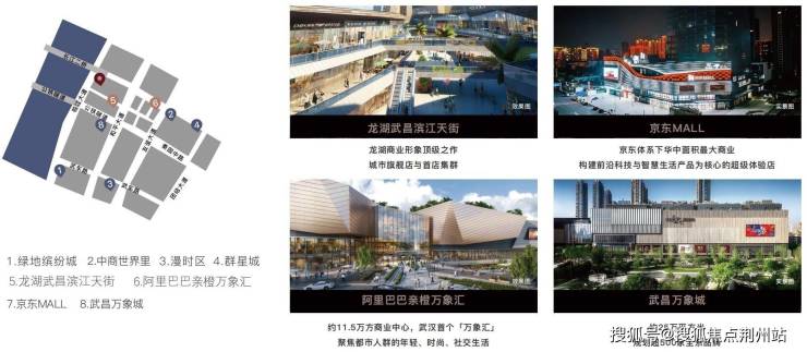 八大旗舰商业:龙湖滨江天街、万象城、亲橙万象汇、京东MALL、绿地缤纷城、中商世界里、漫时区、群星城