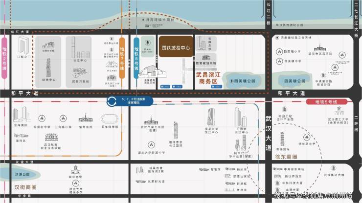 武汉地图对折,武昌滨江正居核心,