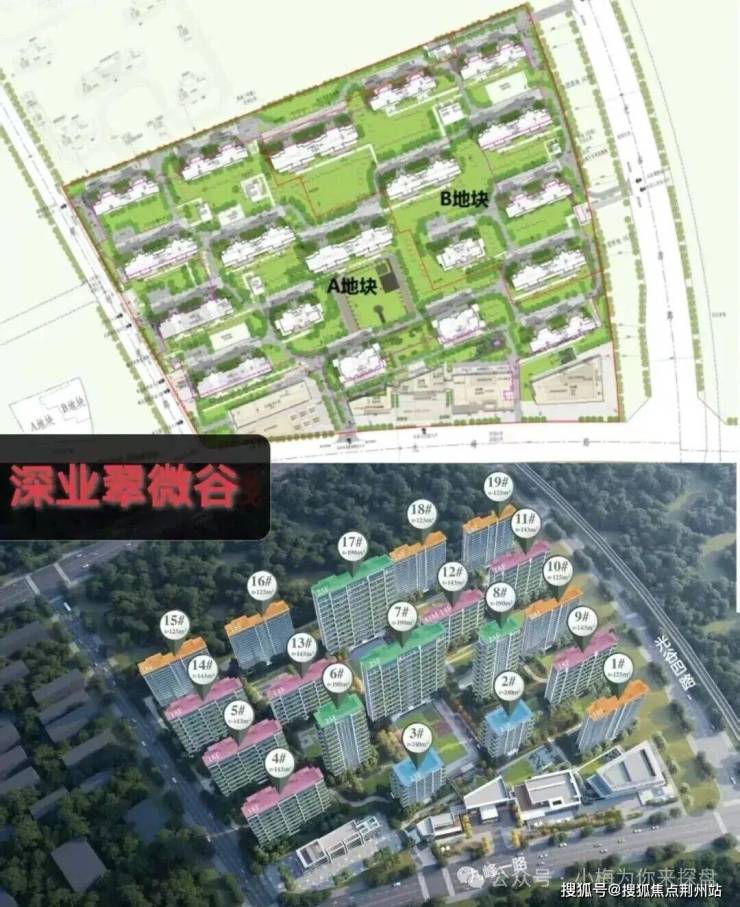 武汉深业翠微谷项目位于武汉市东湖高新区光谷四路与九峰一路交汇处西北侧,当时拿地价楼面地价:3089元/㎡。旁边目前是中建汉韵公馆。该项目地块分为A,B两个部分,总共占地面积约83200㎡,计容建筑面积约186402㎡,容积率约2。但从平面图放大来看,A、B地块之间没有明显分割,规划的住宅为非连廊结构的板式楼。A地块还配套有3433平左右的商业和6班制的幼儿园。