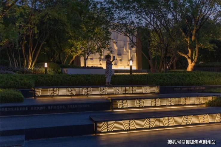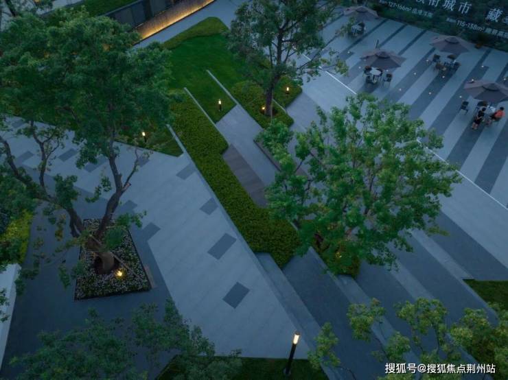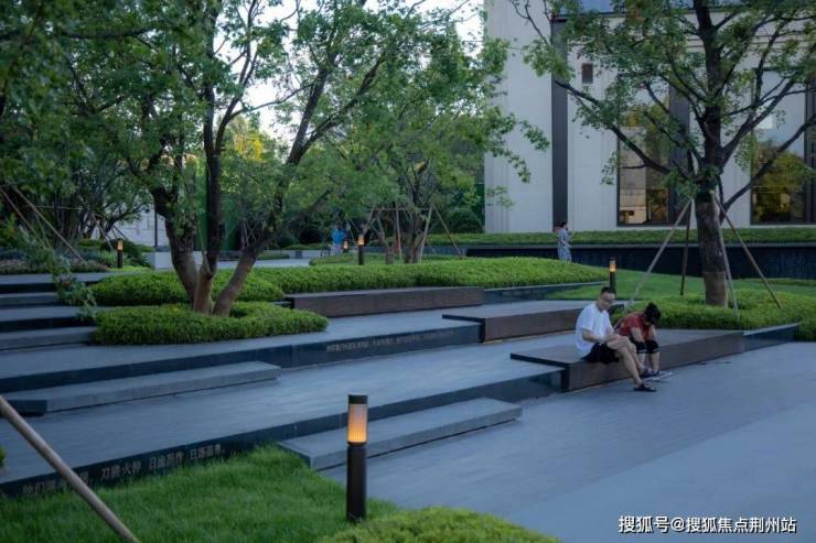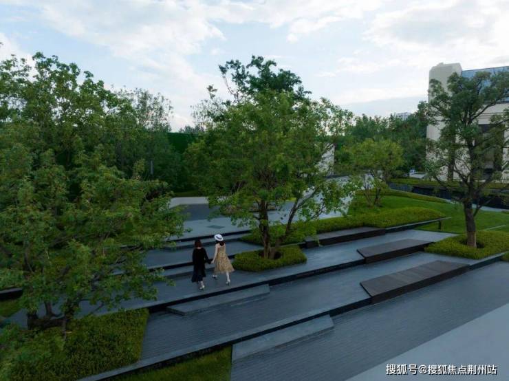 文化阶林下剧场,利用场地本身高差关系,于营销参观动线中设计林下阶梯式休憩空间,参观者也可于此处停留,背靠林荫,面朝城市广场。