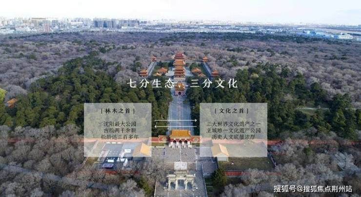 项目紧临主城区唯一的世界遗址公园——北陵公园。北陵公园身为沈阳最大的公园,地段及自然环境绝对稀缺,自然生态资源绝佳;同时也作为三大世界文遗产之一,有着极其特殊的人文历史意义,使得本项目处在一个拥有 “七分生态、三分文化”的强烈地源属性特色的基地之上,有着不可比拟的地段优势。