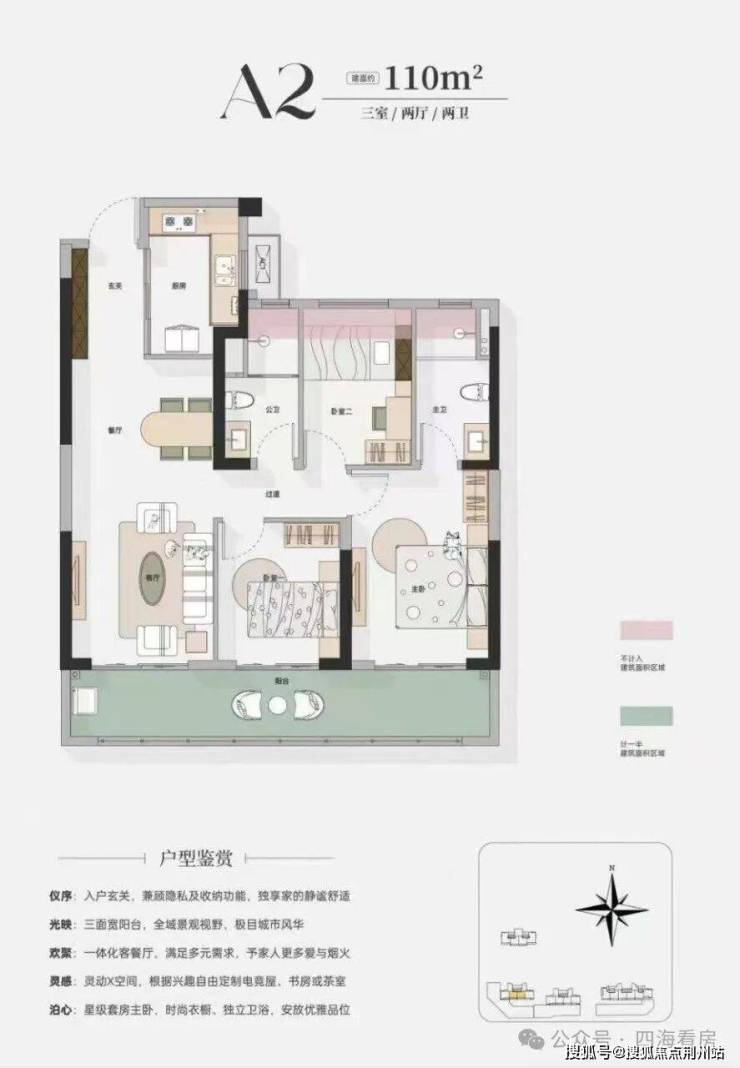 准四代大宅:着眼未来标准,超高得房率,三面宽阳台,日照采光、观景体验俱佳