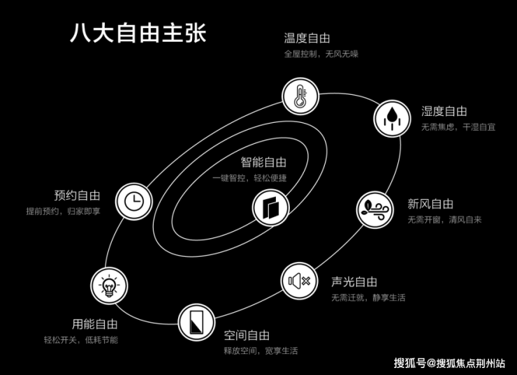 朗诗地产,在原有产品基因之上,培育出第四代健康科技住宅——自由方舟,实现温度自由、湿度自由、新风自由、用能自由、预约自由、智控自由、声光自由、空间自由八大自由。