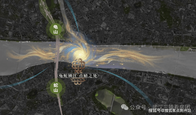 项目踞守蛇山脚下,与龟山隔江对望,扼守“龟蛇锁大江”的点睛之处。位处两江四岸汉水回旋之要冲,成就藏风纳气之所;拥揽长江岸边山环水抱、玉带环腰之势,乃自然天成的兴旺之地厚泽之壤。