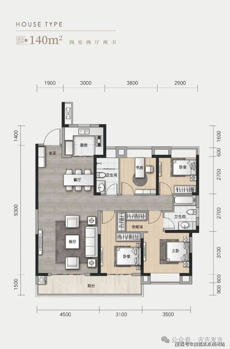 140㎡(4室4厅4卫)位于A2#东边户▽