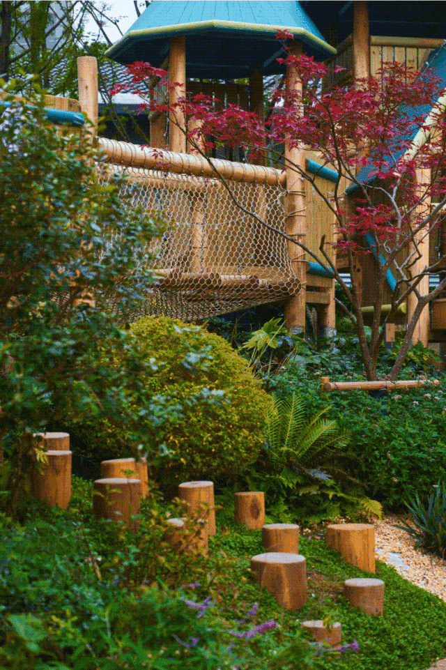所以,万科·昆吾在偌大的儿童区里,将滑梯、爬网、树屋连成一片——