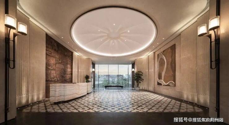 首层大堂,圆形穹顶取意荷叶,地面以珍稀石材拼缀“步步生莲”纹样,暗合天圆地方。接待台背景墙以液态金属浮雕济南地图,让城市文脉触手可及。