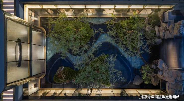 以下沉庭院为画卷,灵感源于大明湖三岛。乌桕掩映间,镌刻诗句的黑山石指引探索,最终抵达豁然开朗的观景台,俯视三岛浮于水面。