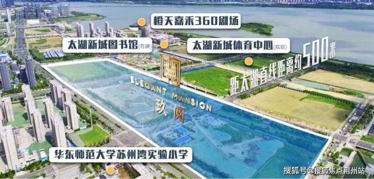 中信泰富·玖阅 ,距离太湖直线约500米,太湖景观、华东师范大学苏州湾实验小学、华中师范大学苏州实验中学、太湖新城图书馆、体育中心、橙天嘉禾360剧场、天鹅湖公园、苏州湾中心广场、苏州市立医院等生活配套,如一张细密大网,将这片低密住区包裹其中。