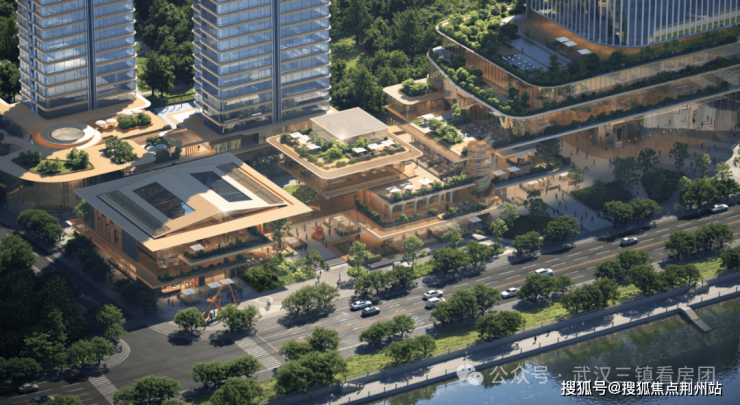 对标上海鸿寿坊,将社交商街与户外空间、无界江景连接,打造城市立体花园,构筑武汉全新高奢城市界面。
