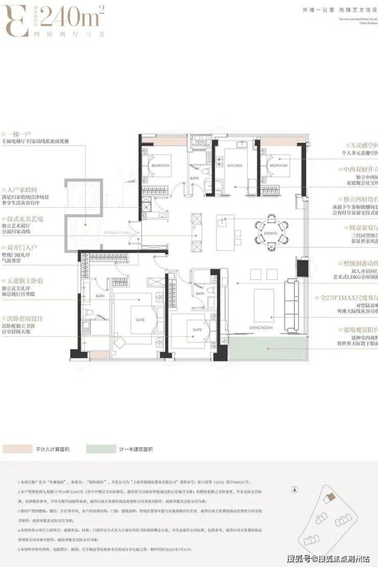 外滩瑞府的产品线规划精准覆盖了高净值家庭从核心居住到终极改善的全周期需求。项目总规划468户,主力户型为建面约121-240平方米的三至四房,后续还将加推195-330平方米的云端平层。