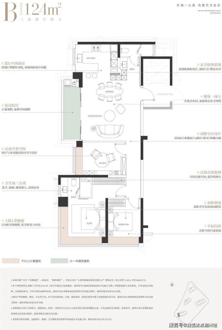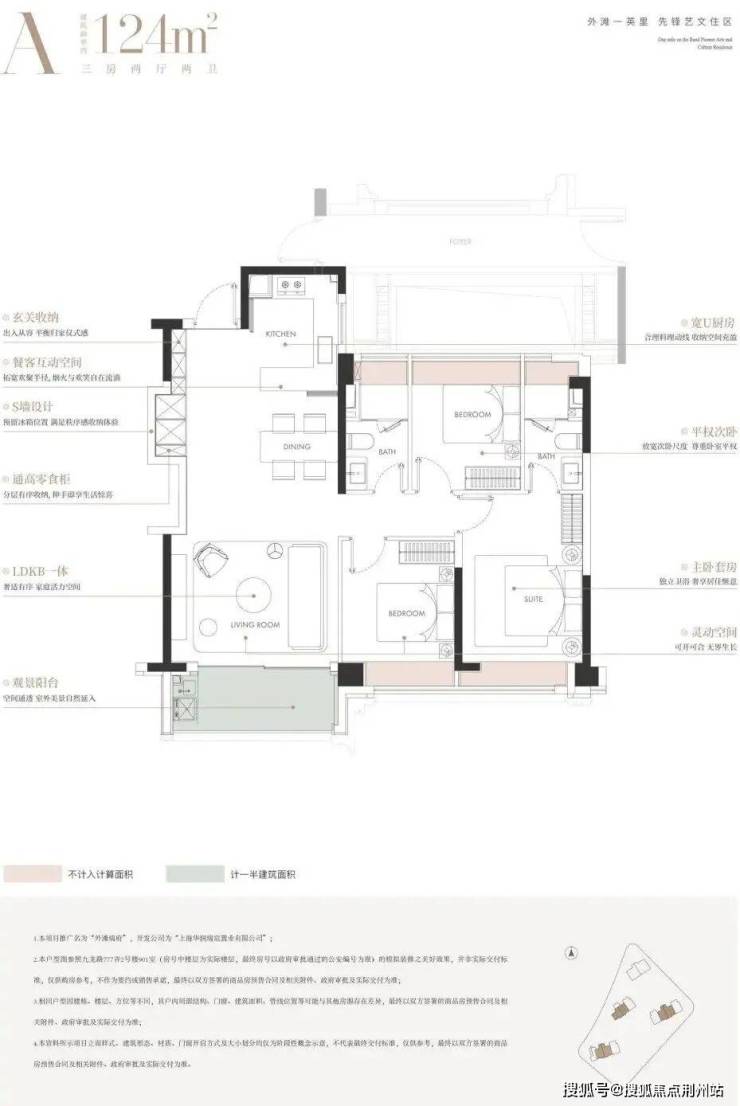 所有户型均秉持“全生命周期居住”理念。例如建面约124平方米户型,在确保三个全功能卧室的同时,于南向设置了可自由定义的“灵动空间”,能随家庭结构变化,在书房、茶室或客厅延伸区之间灵活转换。