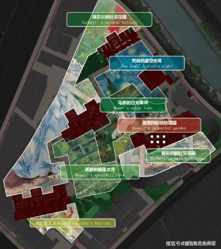 “马奈的日光草坪”营造出开阔明亮的休憩空间,“莫奈的睡莲水湾”通过灵动水景再现光影迷离,而“雷诺阿的缤纷花园”则以丰富的花卉组合带来如油画般的视觉享受。