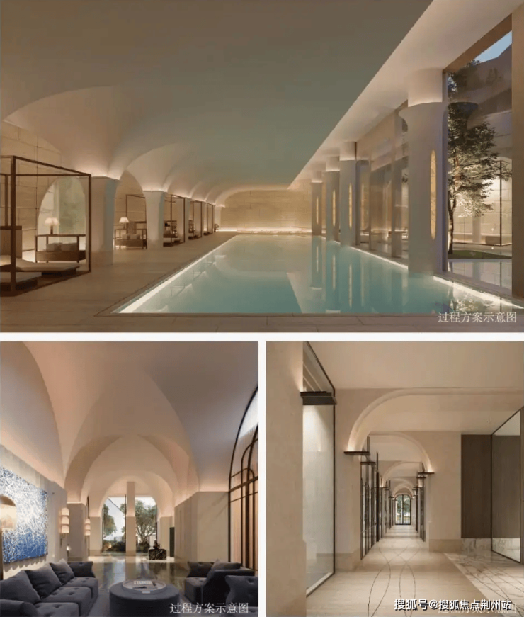 连廊之下,精心设置的休憩“城市客厅”,让社交与艺术展示随时可能发生。此外,项目规划了约2600平方米的“双首层会所”,通过下沉式庭院与地面景观无缝衔接,内设恒温泳池、24小时健身房、私宴厅、茶室及儿童成长中心,满足精英家庭全方位的社交、健康与休闲需求。