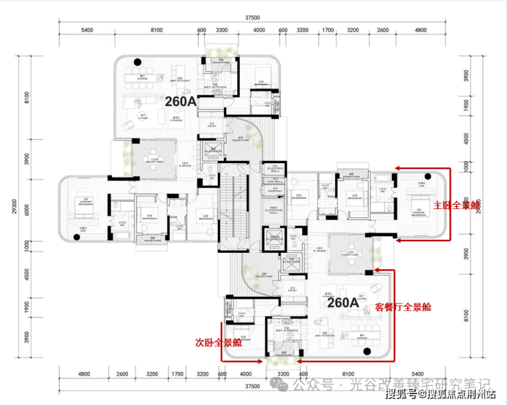 很巧猜对了,万科最终的168户型整体格局和仁和春天260平户型格局基本类似,都做到了四面采光,多个全景舱。