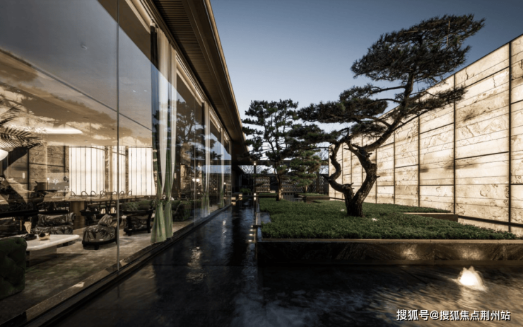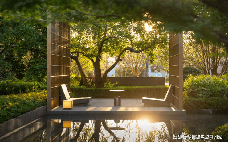 浅池绿岛、格栅景墙……度假式景观中国引领者JTL设计打造的“新加坡度假式水庭景观”透过巨幅玻璃铺展眼前,交织出一种高级而静谧的优雅感。