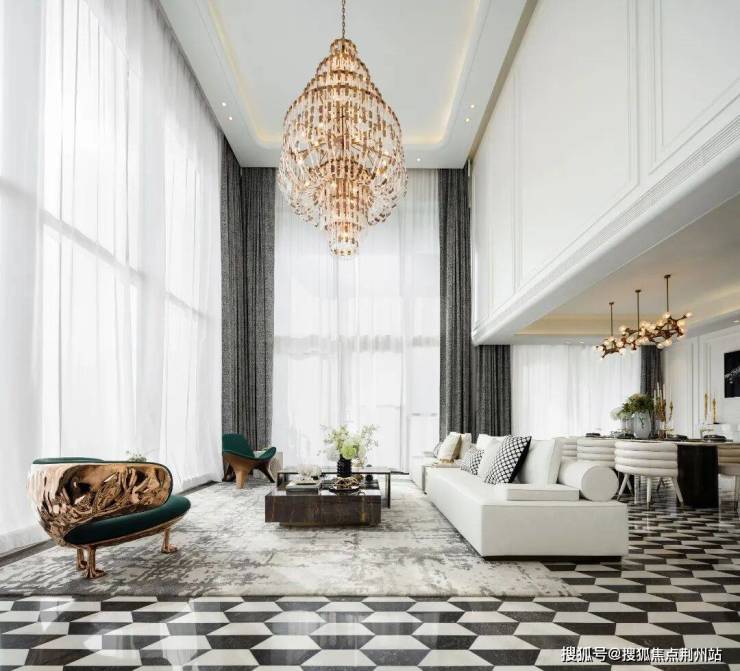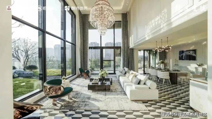 约6.3m跃层挑高延伸空间尺度,约8.5m奢阔横厅配 270° 环景落地窗,晨起看云漫过窗棂,暮色里落日铺满厅室,IMAX视野装下四季盛景。