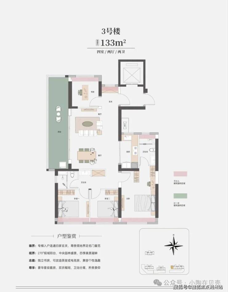 ✅133平(四房边户) 大横厅约9米长大阳台,电梯入户