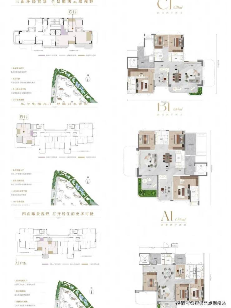 项目规划建面约143-206㎡。纯四代住宅户型图如下。