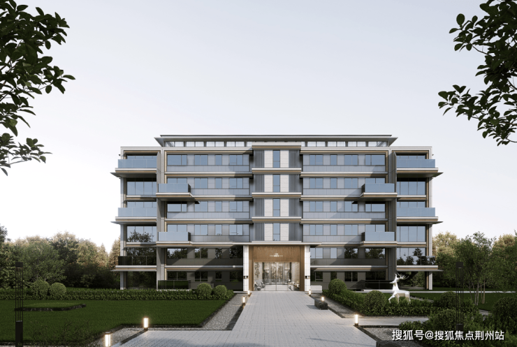 建筑美学立面,洋房立面采用浅灰色+香槟金的色彩搭配,带来现代简约的雅奢美感,很容易引起品位共鸣。