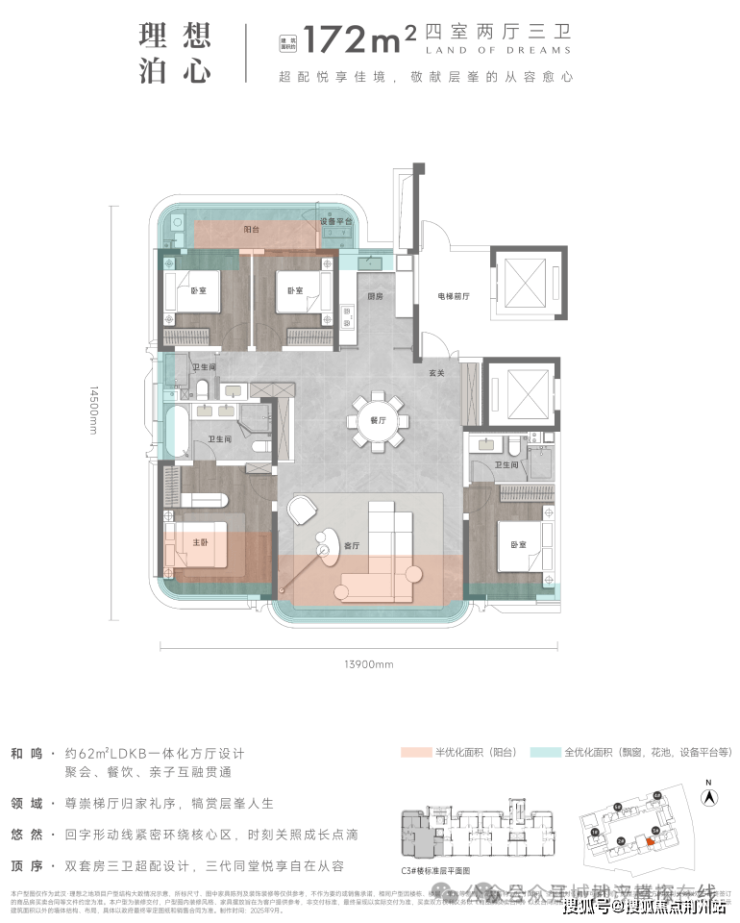 建面约172平户型: