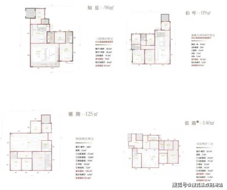 目前金地知音乐府户型图已有更新!户型:一共4个面积96平的3房2厅2卫,119平的4房2厅2卫,140平的大方厅,125平的全景舱户型!相对于金地大成乐府多了一个125平的看湖全景舱!