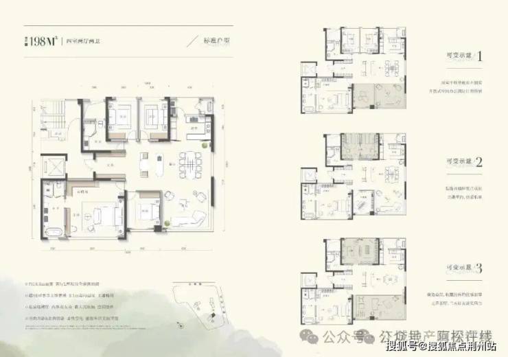 更重要的是,该户型可以实现两房/三房/四房之间的自由切换,业主可以根据家庭需求购房前做好规划,开发商根据业主需求的房型进行定制化处理。