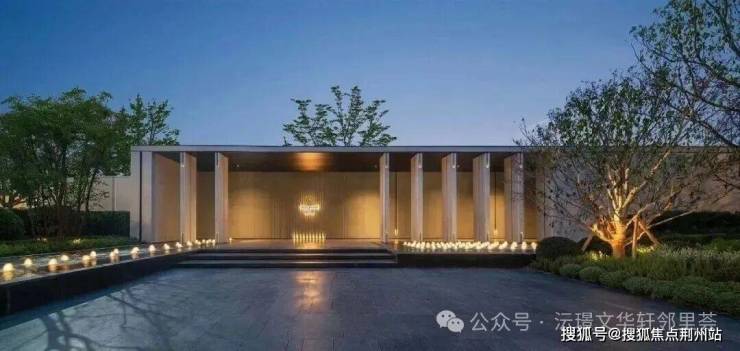为打造公园里的好房子,以自然共生理念,打造松弛精神角落。南侧主动退让城市道路最远处约50m,打造约3500m²一重园景观,包含【登门望璟】门庭、【列柱中庭】塘岸游廊、【曲院泊风】奢级礼制车马院、【浮光春晓】下沉式庭院等四境。