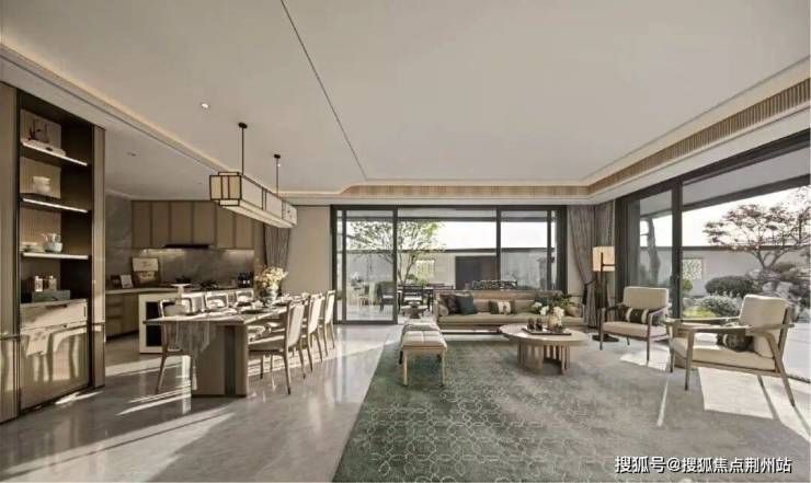 延续传统飞檐的曲线,以大面玻璃幕墻取代封闭墙体,形成虚实相生的空间渗透。引入自然光线的动态变化,与飞檐投影在室内形成“移步换景”的光影,把独属于江南的东方御境安置在家中。