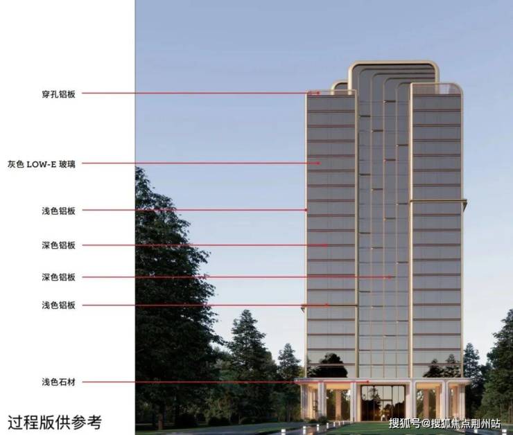 产品方面,望天际为公建化立面标准,立面材料以铝板、石材、大面积玻璃为主,阳台统一封包。