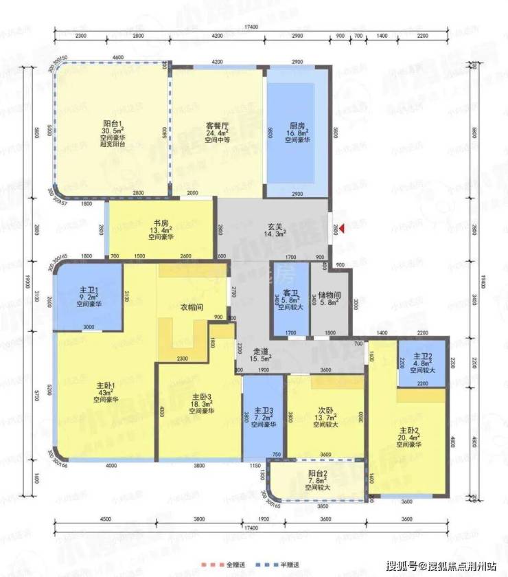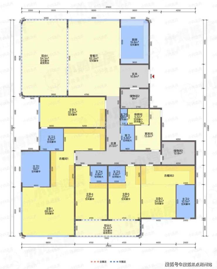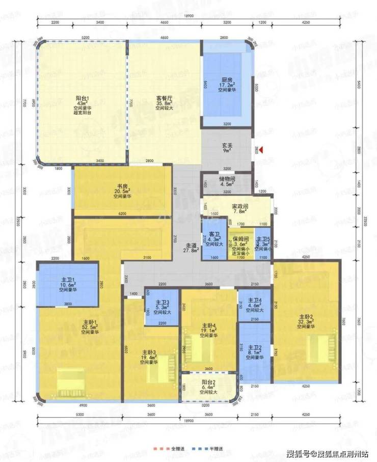❶建筑面积约506㎡户型,6房2厅7卫,含赠送得房率约93%。