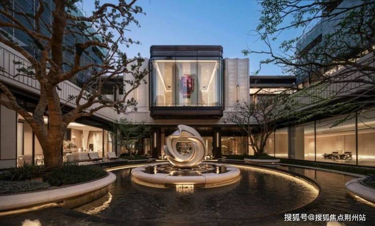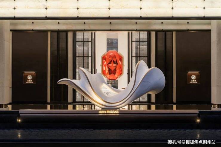在开启门扉的瞬间,门头的镜面水系,搭配洁白温润如玉的雕塑,托起远端闪耀的红宝石,锦绣繁华、福泽呵护,皆是温州人注重的美好意蕴。